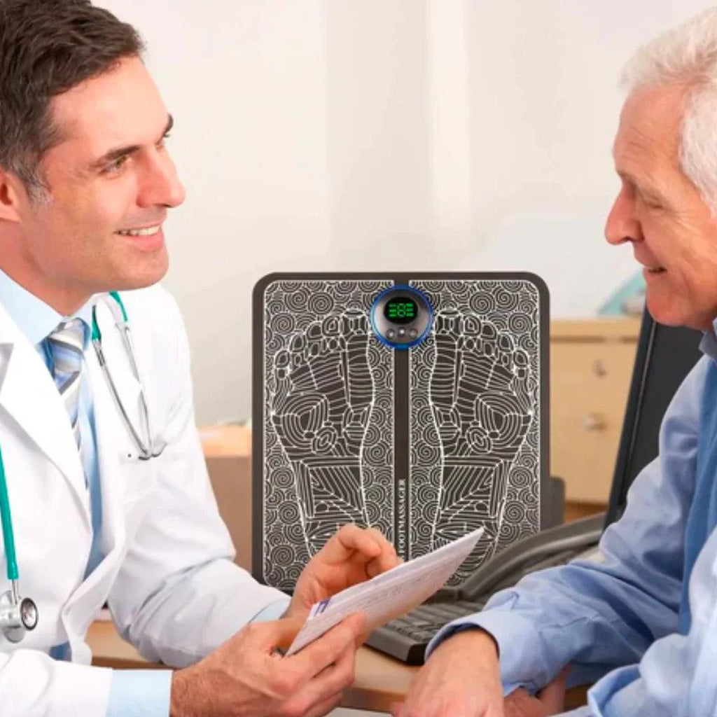 Este revolucionario masajeador estimula en profundidad los músculos de pies y piernas mediante impulsos eléctricos de baja frecuencia, actúa sobre los puntos gatillo y alivia la tensión en su origen.
