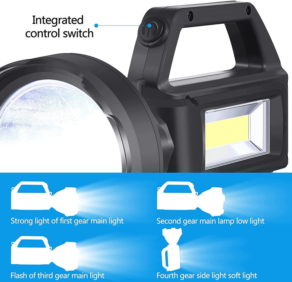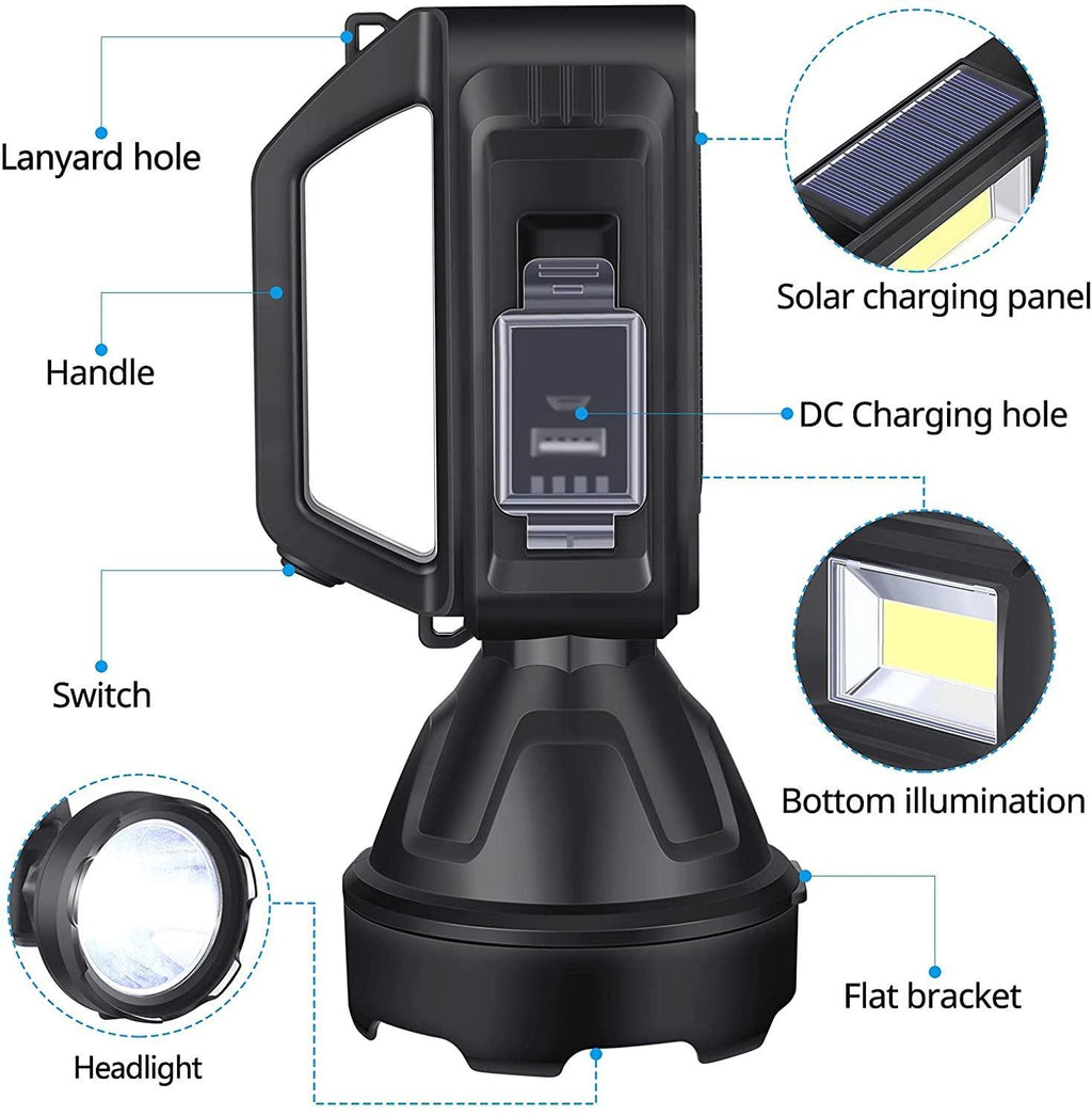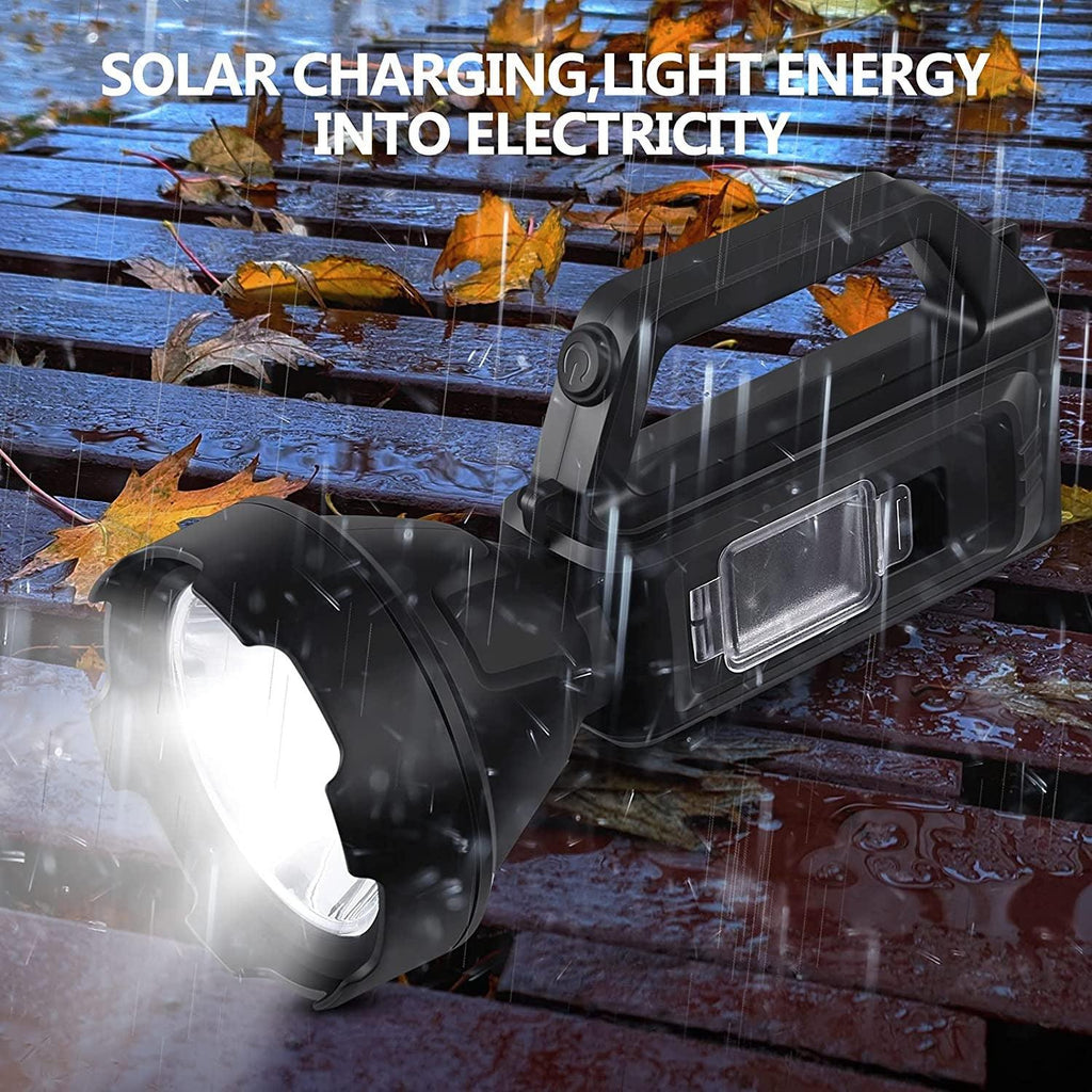 Linterna portátil @@Linterna LED recargable portátil, se puede utilizar como luz de emergencia familiar, luz para acampar al aire libre, luz para automóvil, luz de trabajo y muchos otros propósitos. @@Ligero y portátil @@La potente linterna LED está hecha de material ABS de alta resistencia, la carcasa es resistente, a prueba de caídas y ligera. @@4 modos de iluminación @@Nivel 1: modo de luz fuerte @@2da marcha: modo de poca luz @@3 niveles: modo flash @@4ta marcha: modo de luz lateral @@Carga solar @@El panel solar de la linterna se puede cargar bajo la irradiación de la luz, y no hay miedo a que no haya electricidad en el exterior. @@Fuerte rendimiento a prueba de agua@@La linterna tiene un rendimiento a prueba de agua IPX4 y se puede usar normalmente con lluvia ligera y nieve. @@Carga USB